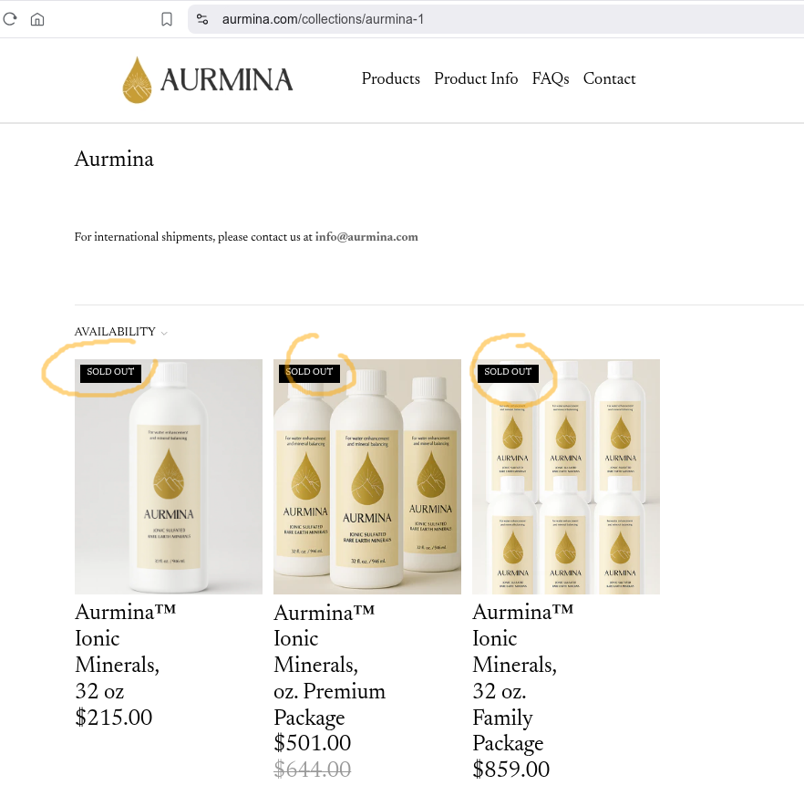 Aurmina drops sold out after pierre kory endorsement, screenshot taken 2025-11-23