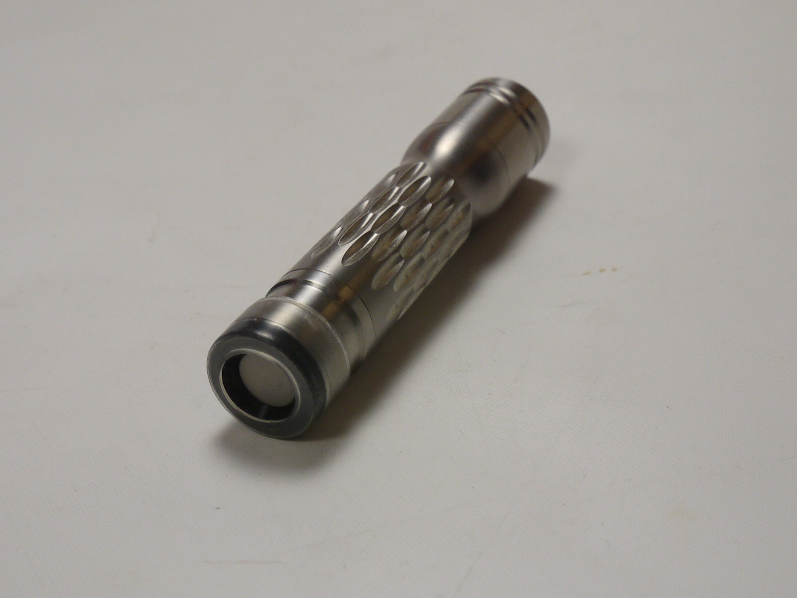 Many of the mini flashlights are made of aluminium. Aluminium does not feel good and it's too soft. It wears out easily. Titanium is the ideal material. It's very bio-compatible, light and hard.