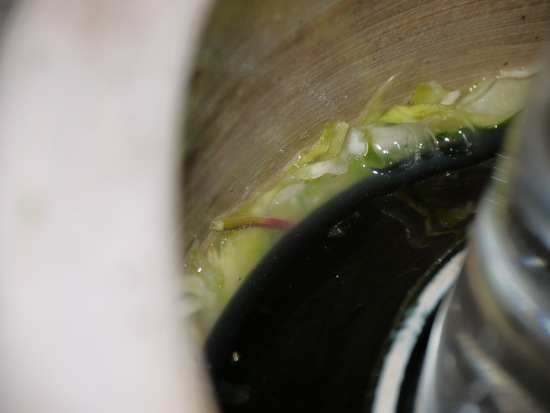 A thick white slime can form if not enough salt was used to prepare the cabbage.