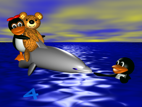 Karl wanted to go on a dolphin ride too. But Wom wasn't strong enough to carry Karl, Gini and Felicitas. So they quickly swam to Wom's home to ask Wom's brother Wim if he could help. Of course he could.