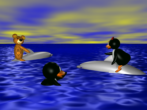 What fun it was. They were riding and jumping and flying through the ocean. But when they looked to the shore where their friend Clive was sitting in a beach chair eating delicious looking ice cream Karl couldn't resist and faster than you could count to 6 he swam to the beach. Amused Clive shared his ice cream with Karl. Of course he then joined his friends in their water dance.